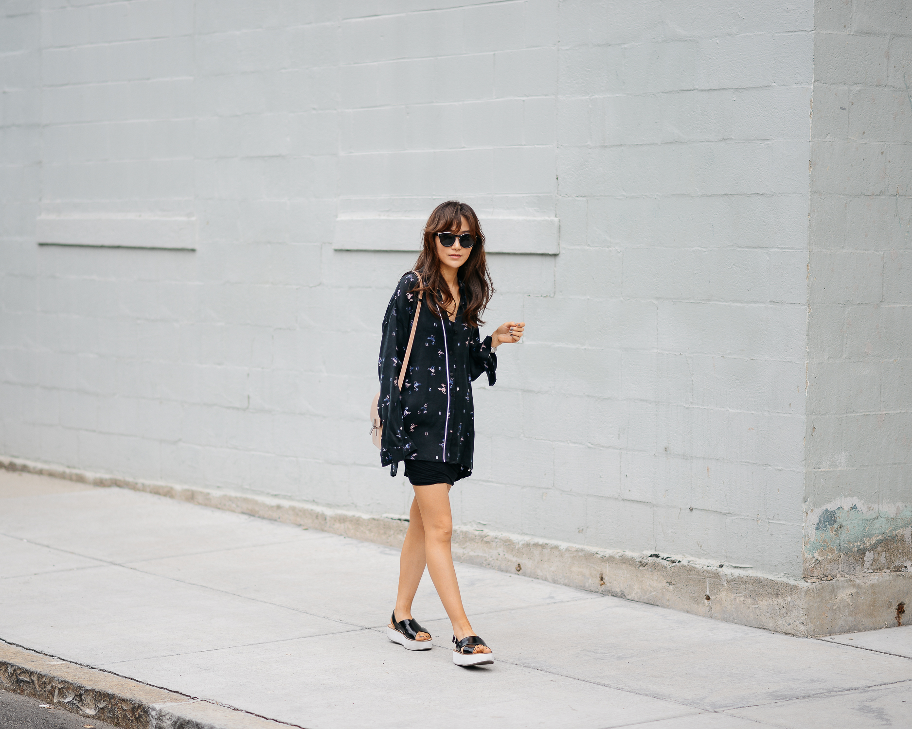 I’m spreading some pajama vibes for the weekend. Tibi certainly didn’t make this silk blouse for your bedtime but it’s so comfy that I’d like to make associations that way. The collarless neck, the ink black color, and those funky bird prints are all cool, strong designs in my book. And my favorite part is its very relaxed fit and its strong and smooth silk-cotton mixed fabric. Gee, I’m such fabric snob, but what else is new? 😉